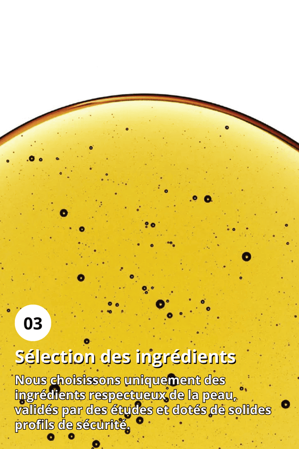 Nos ingrédients sont sélectionnés et assemblés avec soin pour une absorption optimale par la peau, afin que votre corps reçoive exactement ce dont il a besoin — sans les hauts et les bas qui accompagnent souvent les formats traditionnels.
